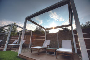 Bei der PERGOLA SUNRAIN Q wurden sämtliche Anforderungen an modernes, zeitloses Design und effektiven Schutz vor Sonne, Wind und Regen konstruktiv umgesetzt. Schöner und effektiver kann Wetterschutz nicht sein. Das kubische Rahmengestell passt vom Design an jedes moderne Gebäude. Die Montage kann freistehend fixiert auf Fundamente oder einseitig an der Wand erfolgen. Mehrere Anlagen können problemlos „in Reihe“ aufgestellt werden.